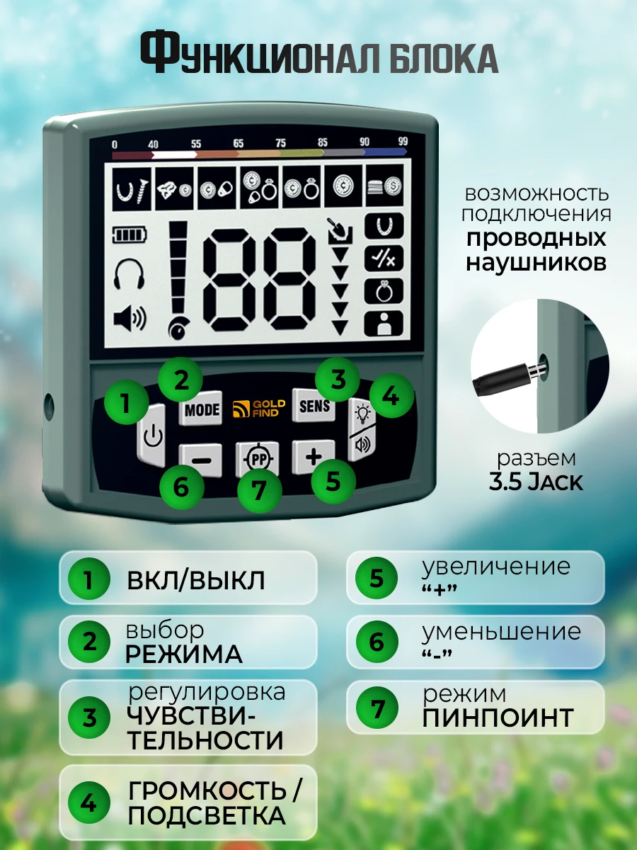 озвучивает находки, а возможность подключения проводных наушников даёт шанс работать бесшумно — идеально для поиска в людных местах или чтобы не пугать лесных обитателей.