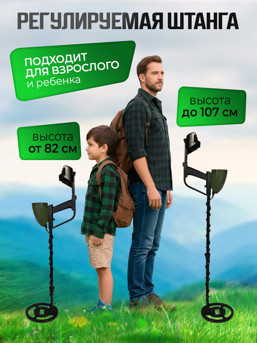Начнём с удобства настройки. Телескопическая штанга регулируется по длине от 80 см до 130 см. Представьте: сегодня вы ищете в парке и установили штангу на 90 см, чтобы удобно ходить между деревьями. Завтра отправляетесь на открытое поле — и увеличиваете длину до 120 см, чтобы охватить больше пространства. Конструкция из лёгкого сплава обеспечивает прочность без лишнего веса — не придётся уставать уже через час работы.